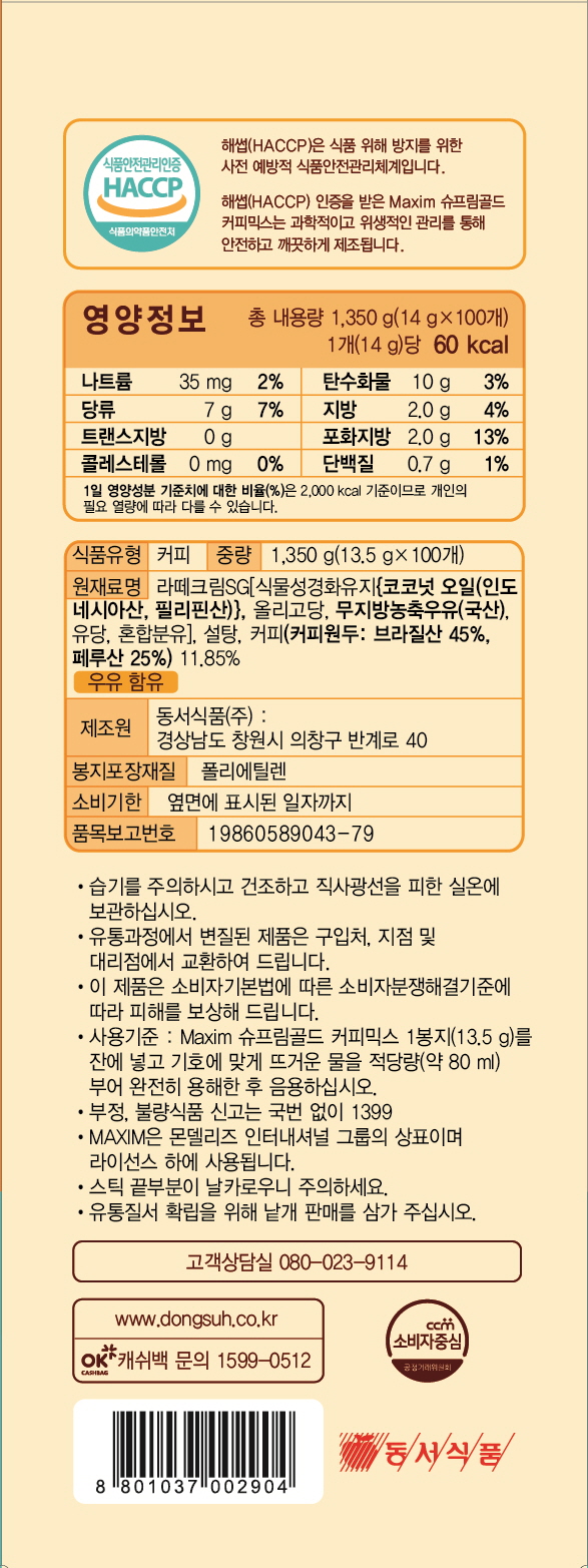 맥심 슈프림골드 커피믹스(13.5g*100T/동서식품)